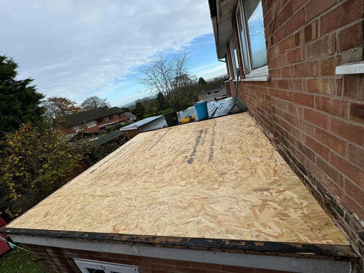 Modern firestone rubber flat roof replacement in Cheddleton, Leek.